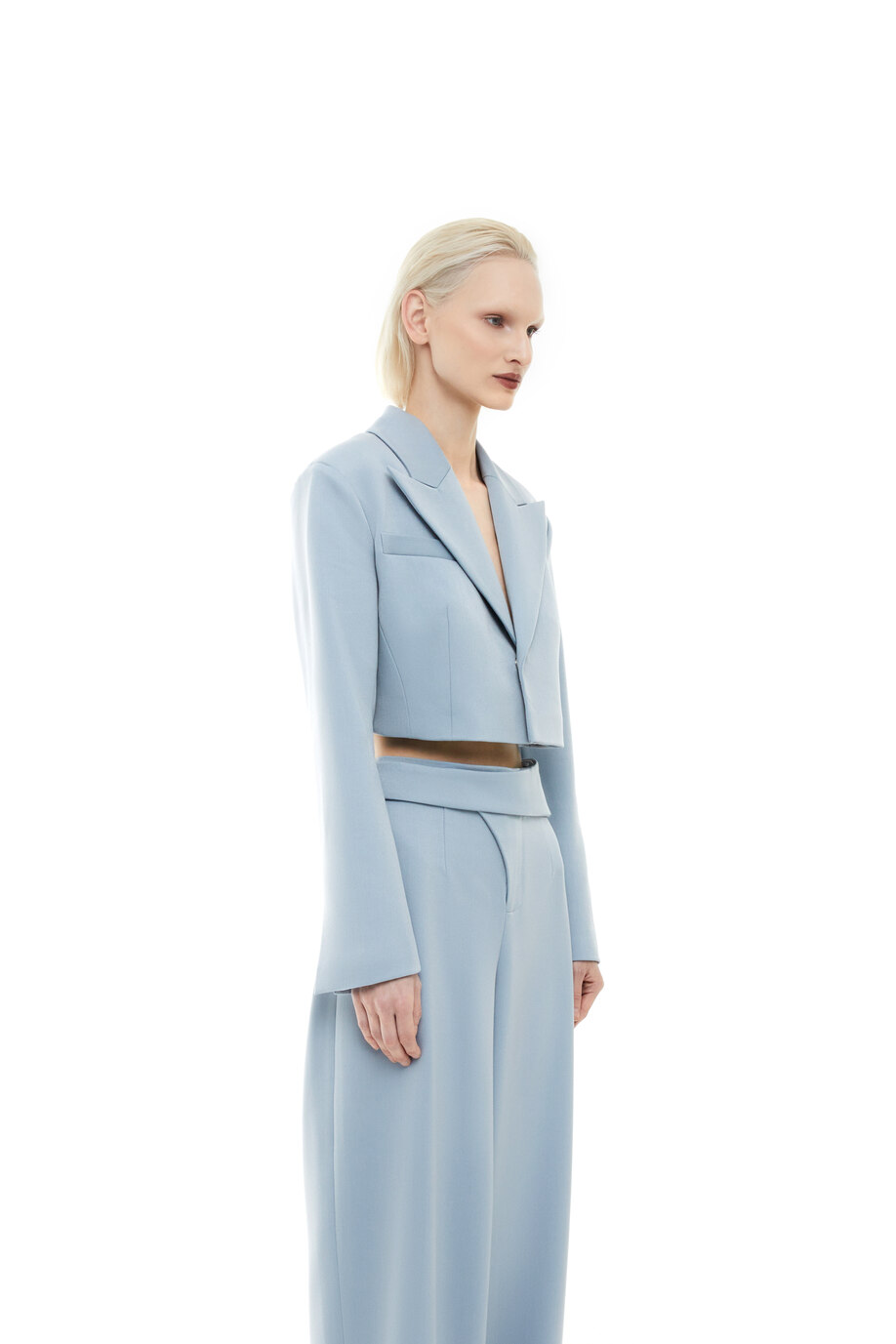 Костюм выполнен из эластичной костюмной ткани