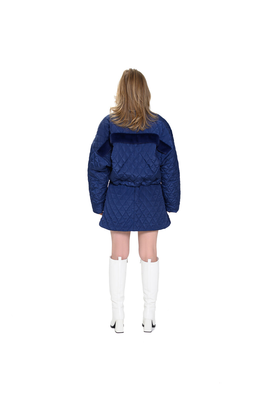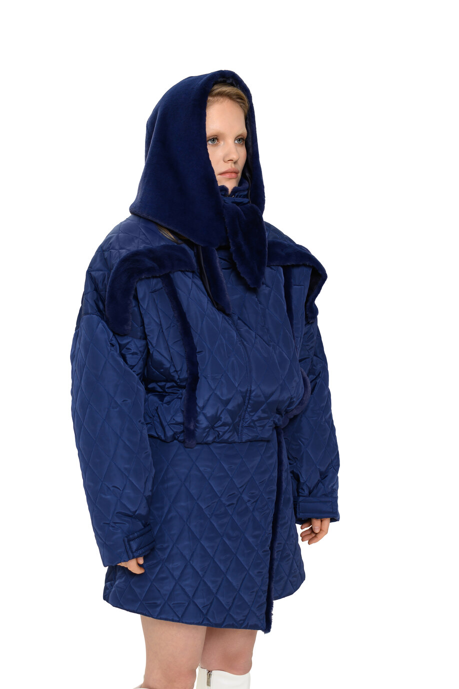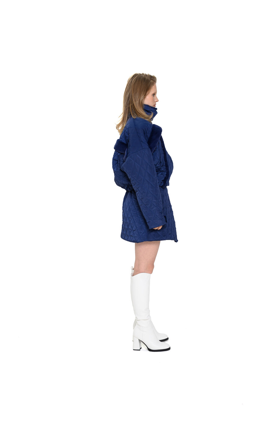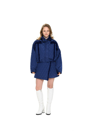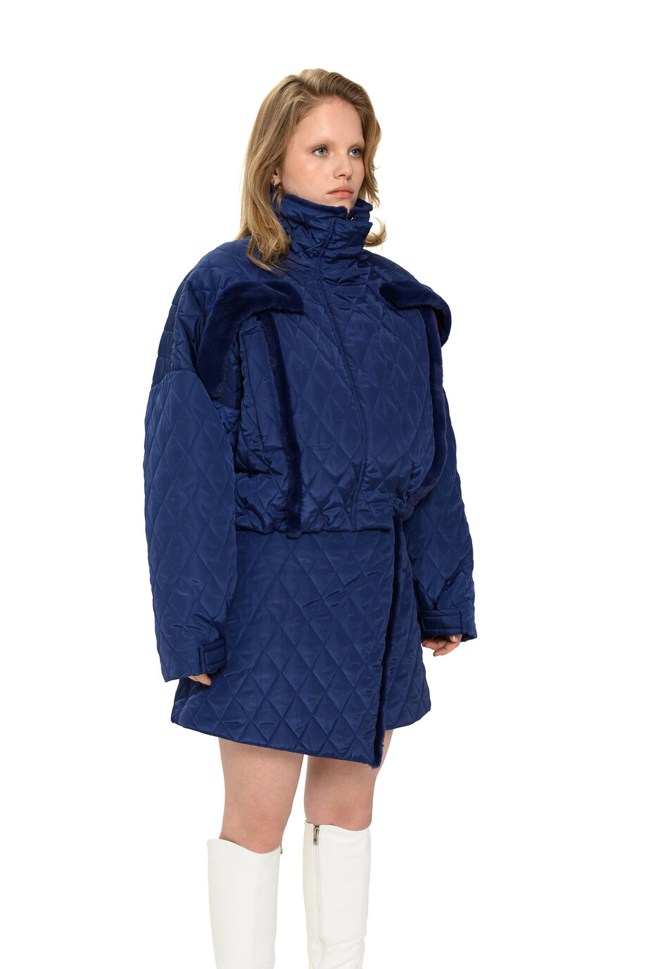 Костюм выполнен из стеганой плащевой ткани и отделан экологическим мехом